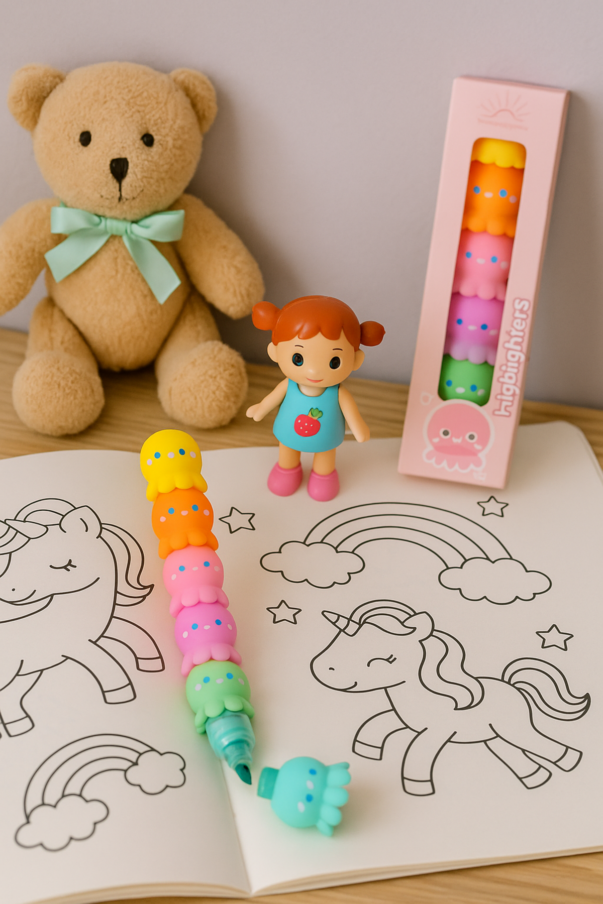 Ahtapot Modelli 5 Renk Fosforlu Kalem