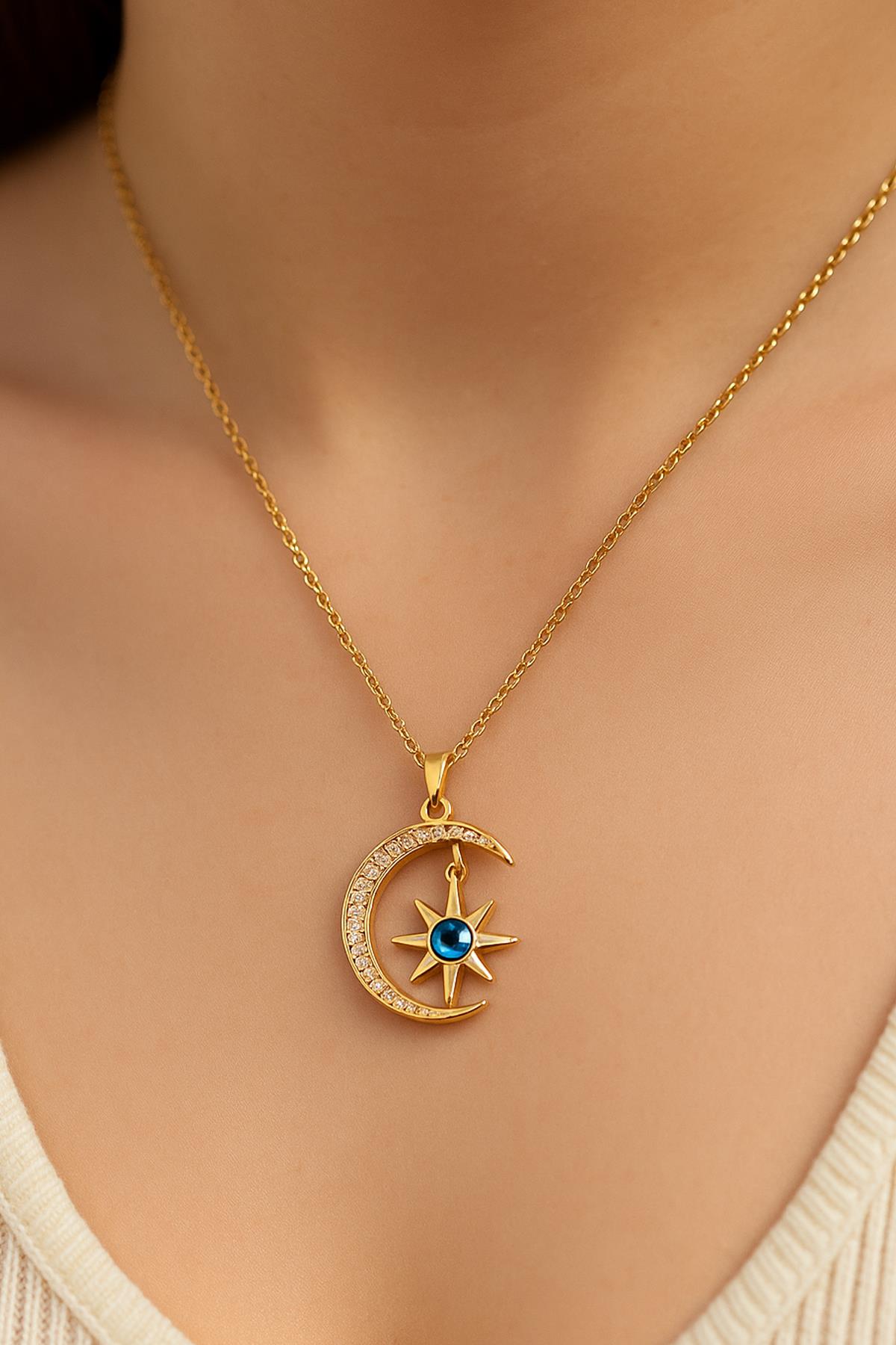 AY YILDIZ GOLD AURA TAşLI KOLYE