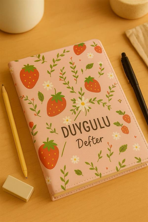 ÇİLEKLİ ZARF ÇİZGİSİZ BÜYÜK BOY DEFTER