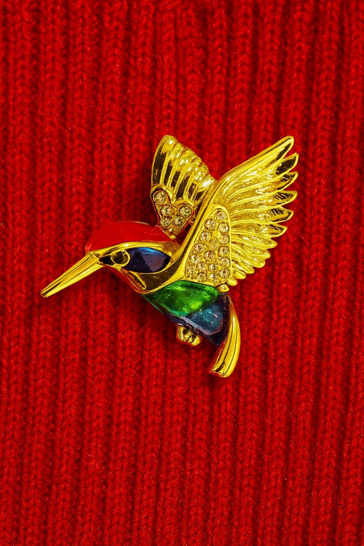 Çok Renkli Taşlı Sinek Kuşu İğneli Broş
