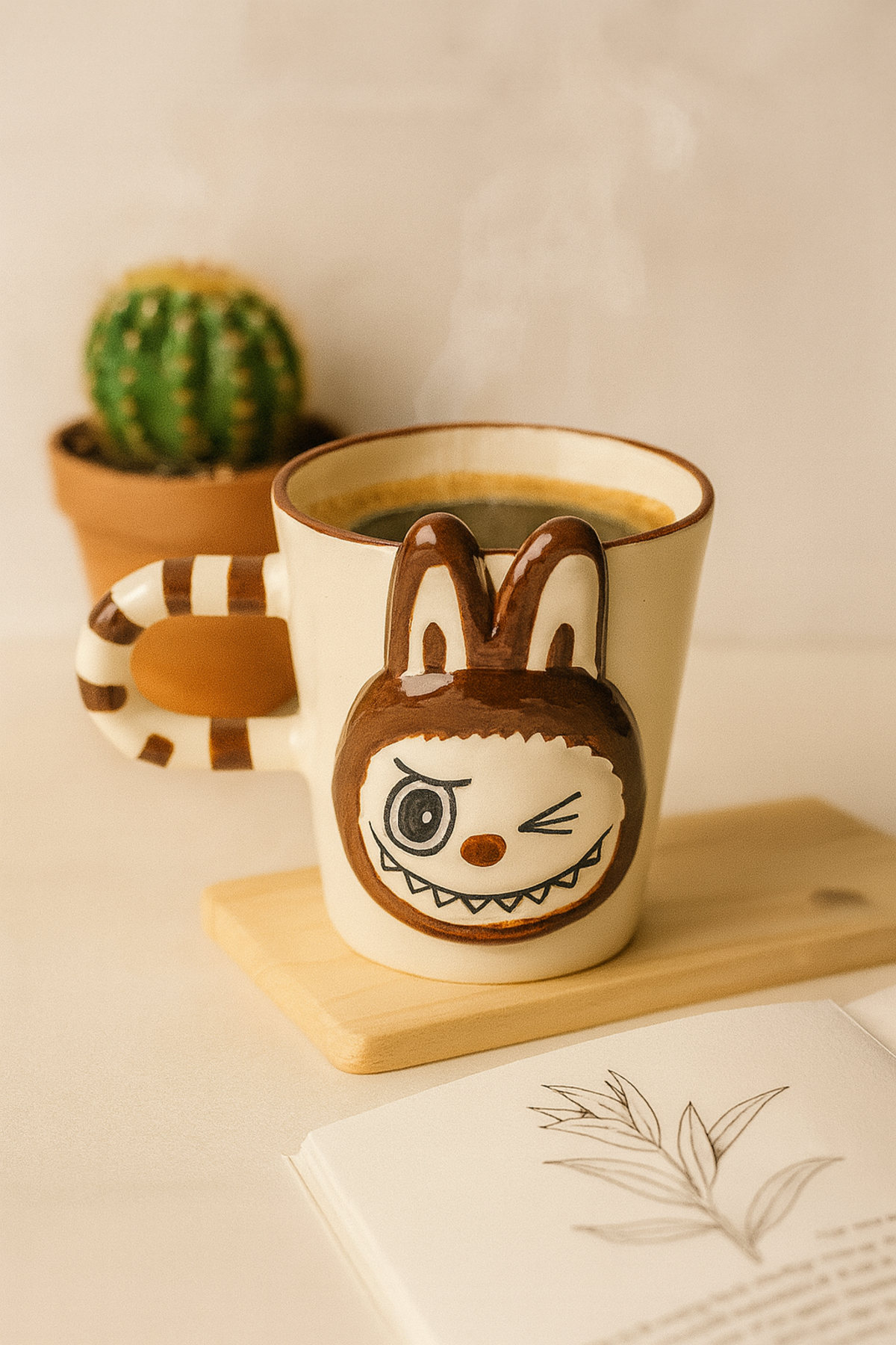 Kahverengi Göz Kırpan Labubu Kulplu Fincan