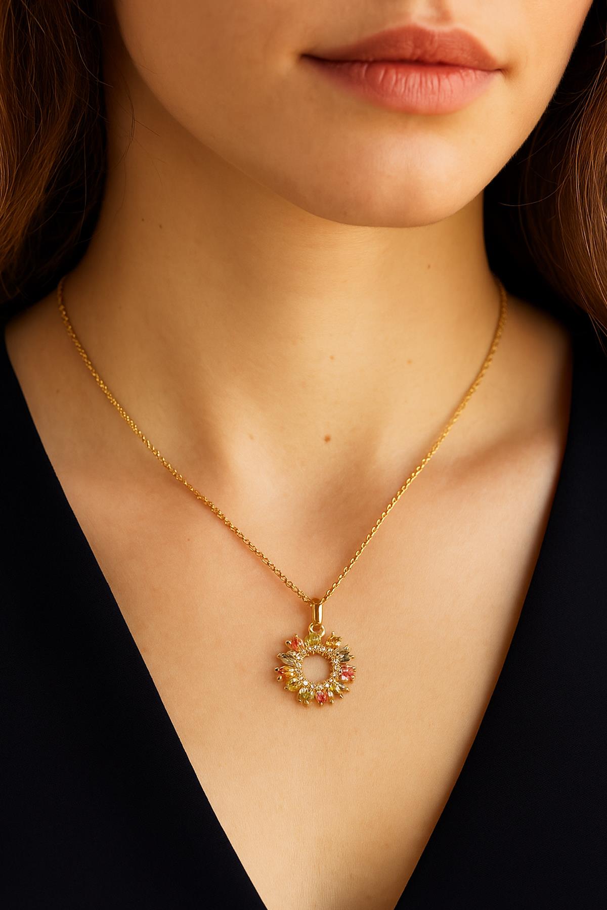 KELEBEK ÇİÇEKLİ ÇELENK KOLYE