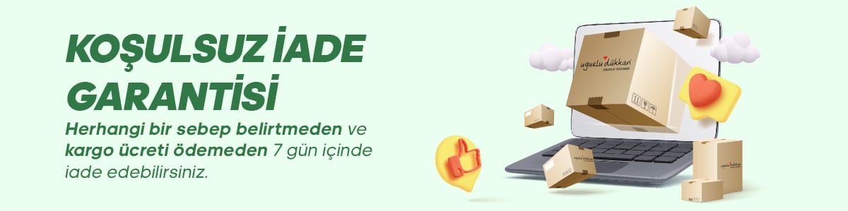 Uğurlu Dükkan’dan satın aldığınız ürünlerden herhangi bir sebeple memnun kalmazsanız, *7 gün içinde koşulsuz iade ve %100 geri ödeme garantisi* sunuyoruz.