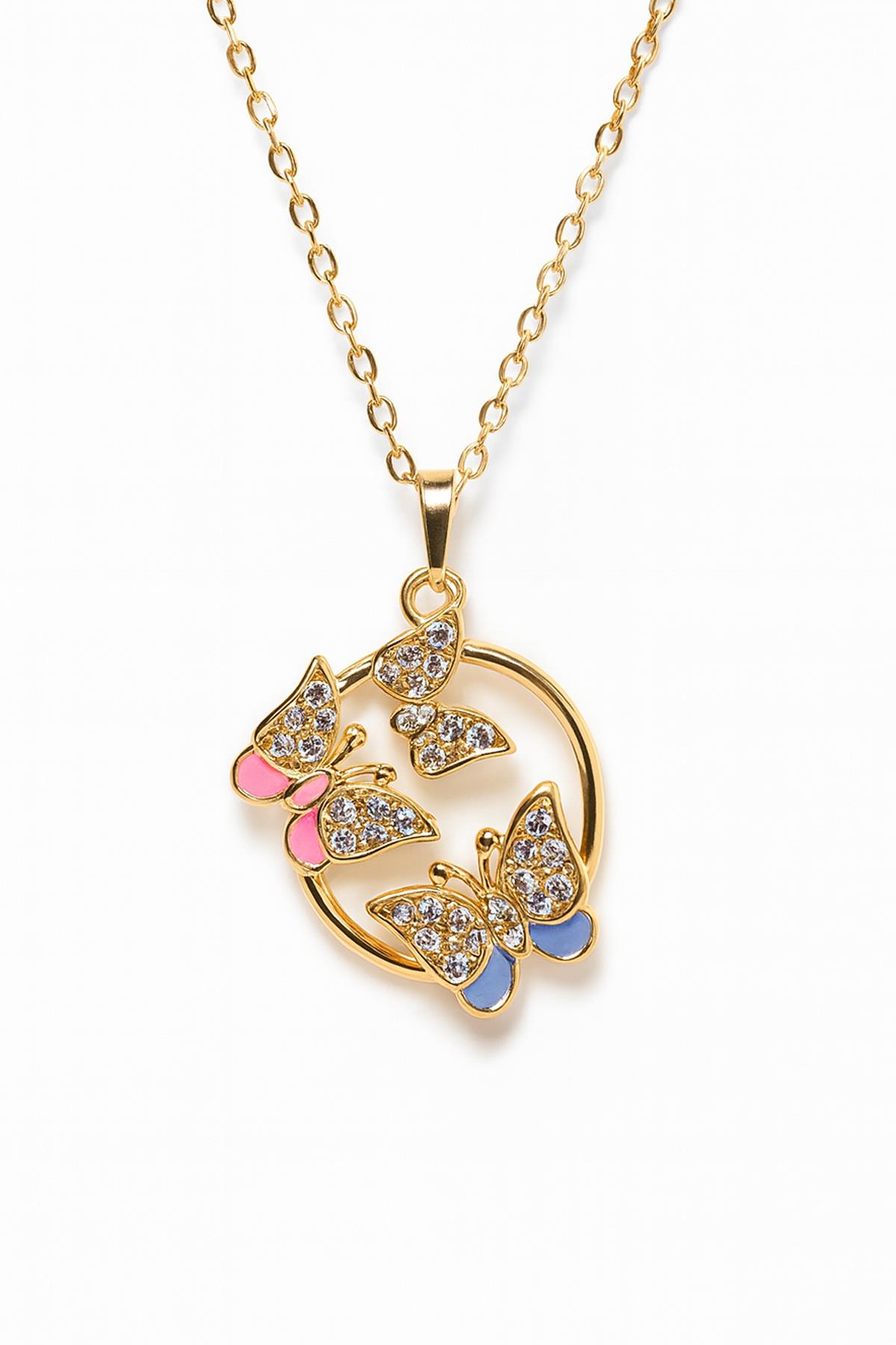 3 RENKLİ TAŞ KELEBEKLER   KOLYE