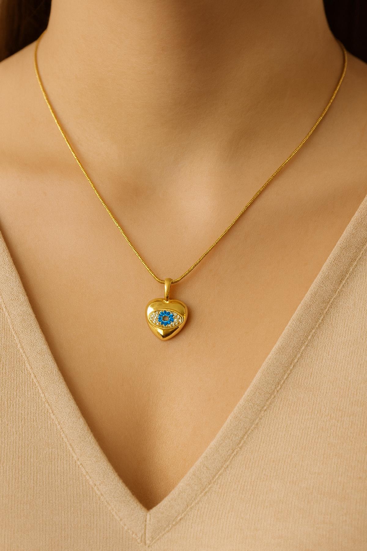 Beyaz Mavi Taşlı Kalp Nazar Göz Çelik Kolye