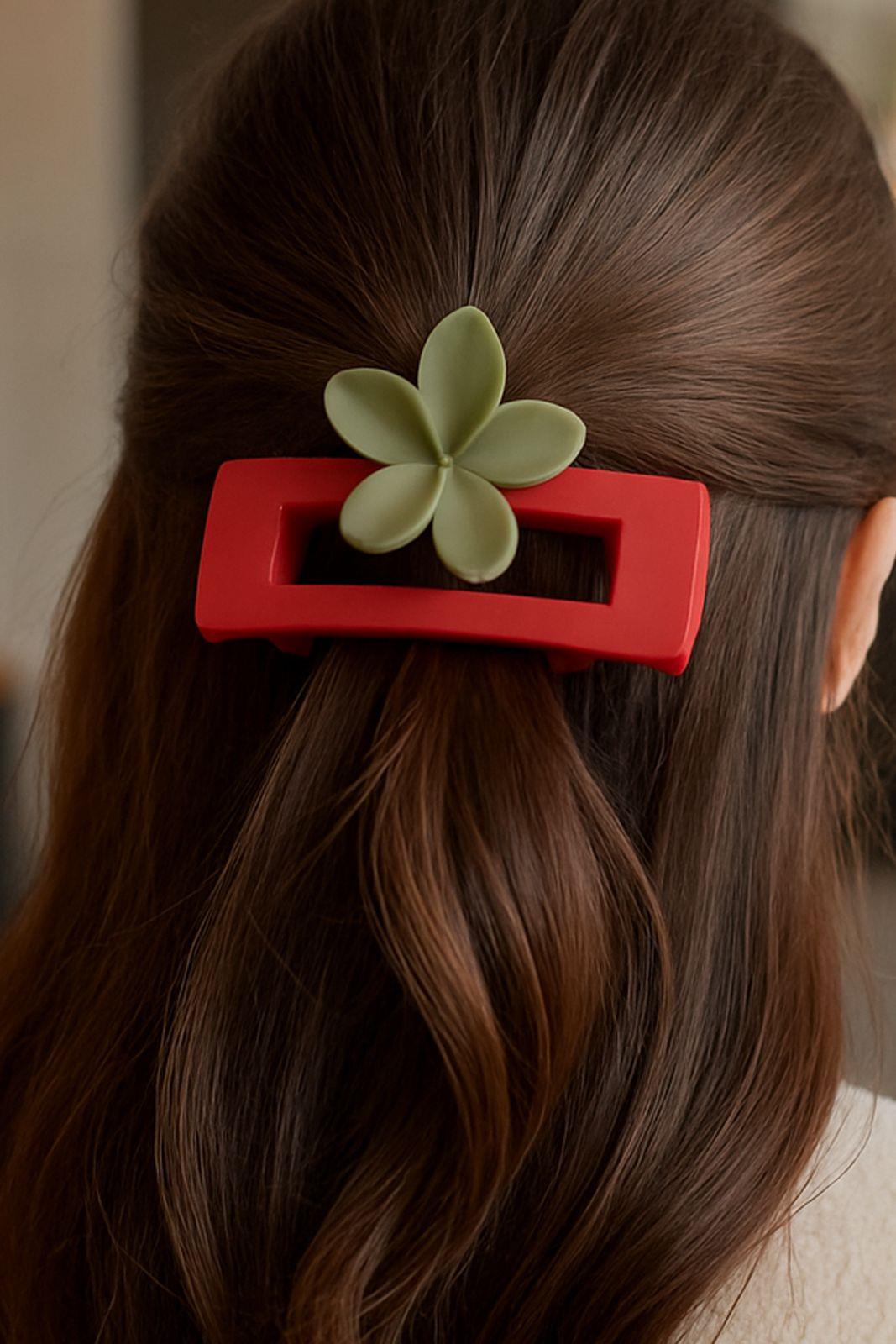 ÇİÇEK MODELLİ ÜZERİ PARLAK RENKLİ KEMiK MANDAL TOKA