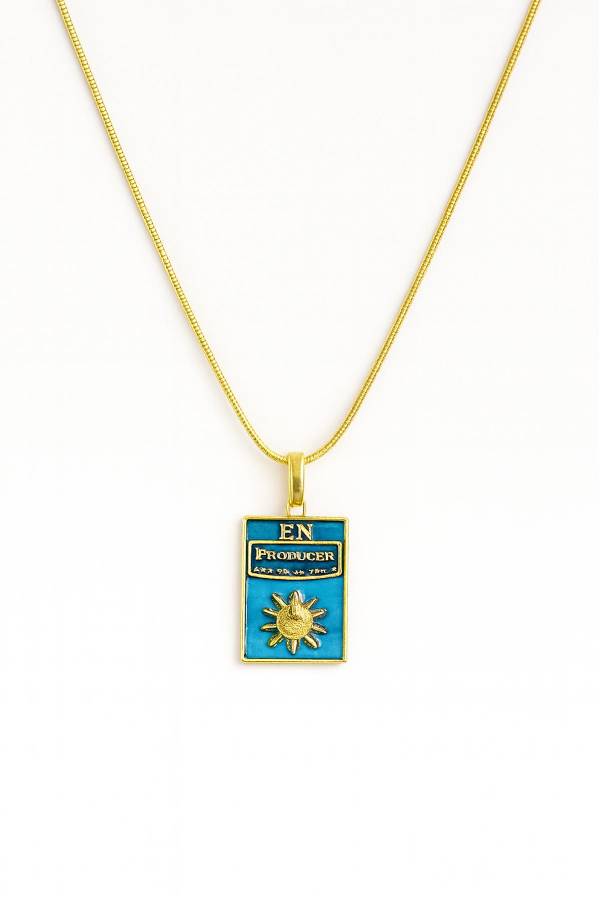 Dikdörtgen Zeminli Güneş ve Figürler Kolye