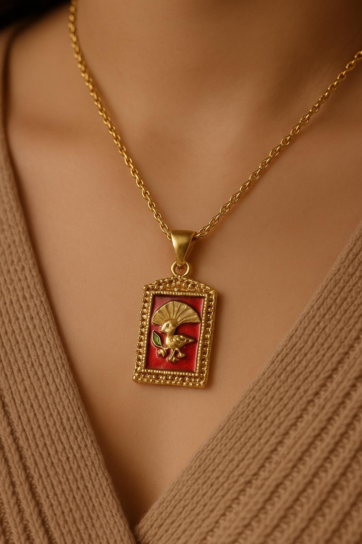 Dikdörtgen Zeminli Sinek Kuşu Çelik Kolye