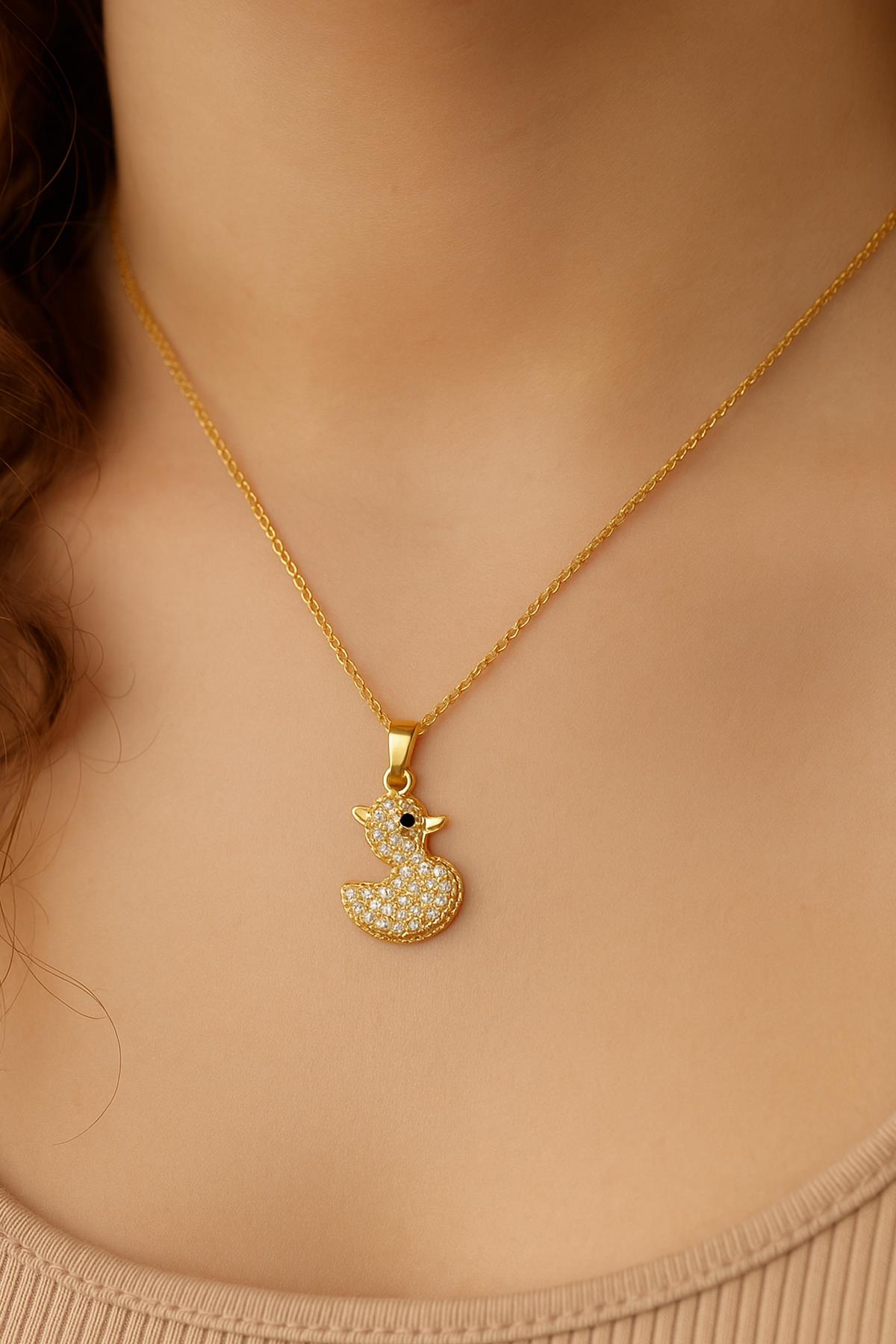 Gold Beyaz Taşlı Ördek Figür Çelik Kolye