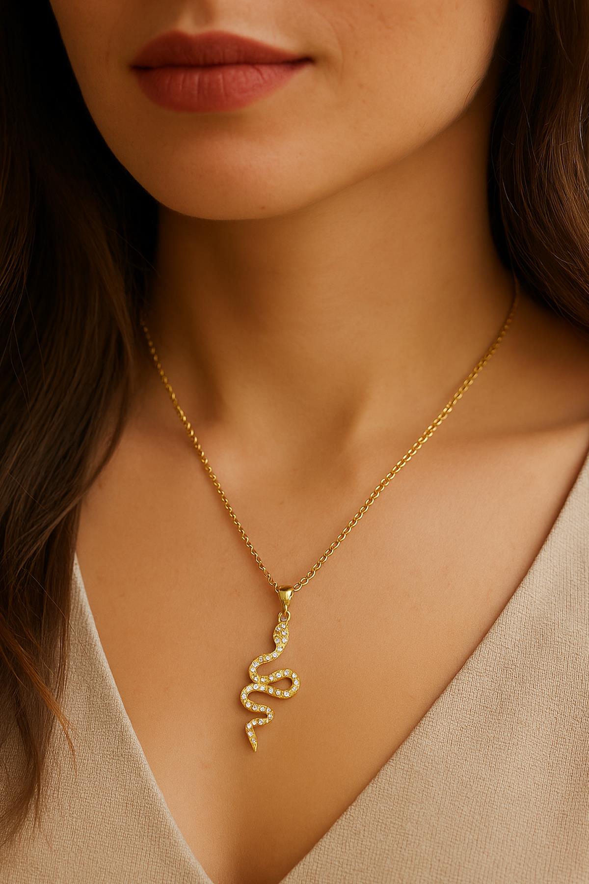 KIVRIK ÜSTÜ TAŞLI GOLD YILAN KOLYE