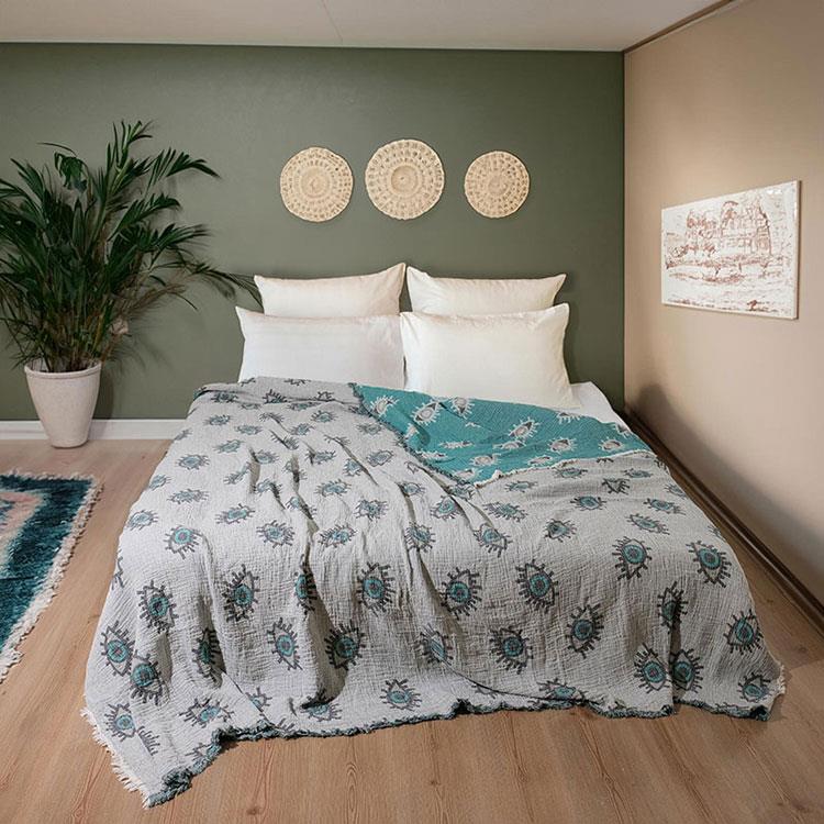 Müslin göz desenli pamuklu çift kişilik pike, farklı renk ve desen seçenekleri sunar, böylece kişisel tercihinize uygun olanı seçebilirsiniz. Odanızın renk paleti ile uyumlu bir pike seçerek dekorasyonunuzu tamamlayabilirsiniz.