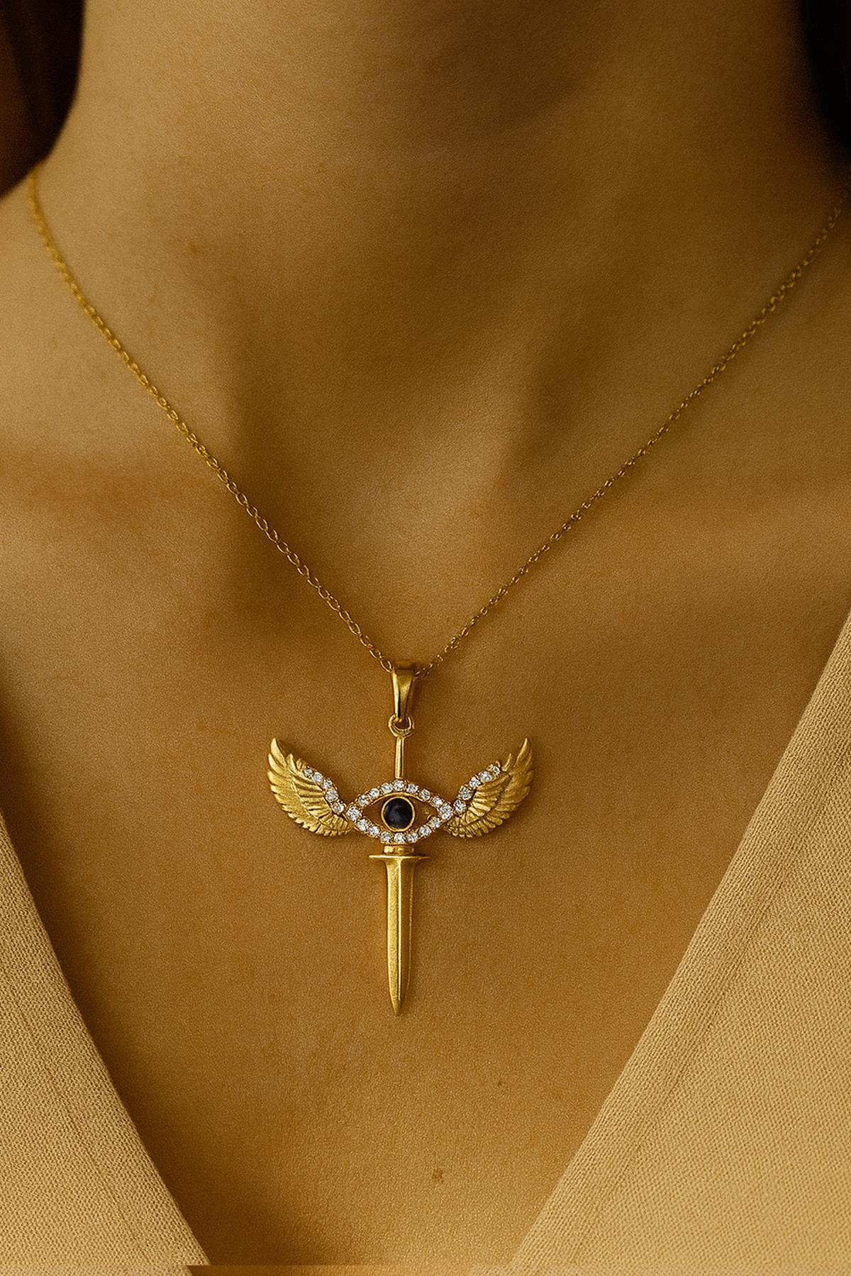 Nazar Göz Kanatlı Kılıç Çelik Kolye