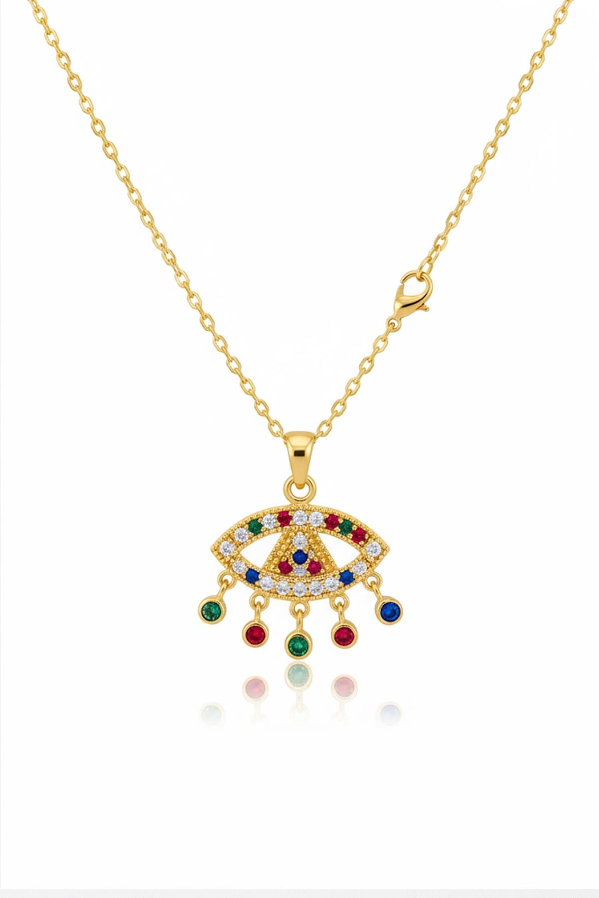 Renkli Taş Kirpikli Nazar Göz Çelik Kolye
