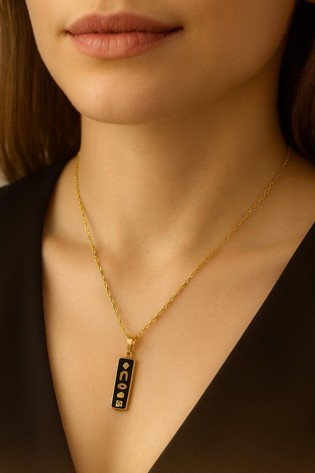 Siyah Zeminli Uzun Şans Figürleri Çelik Kolye