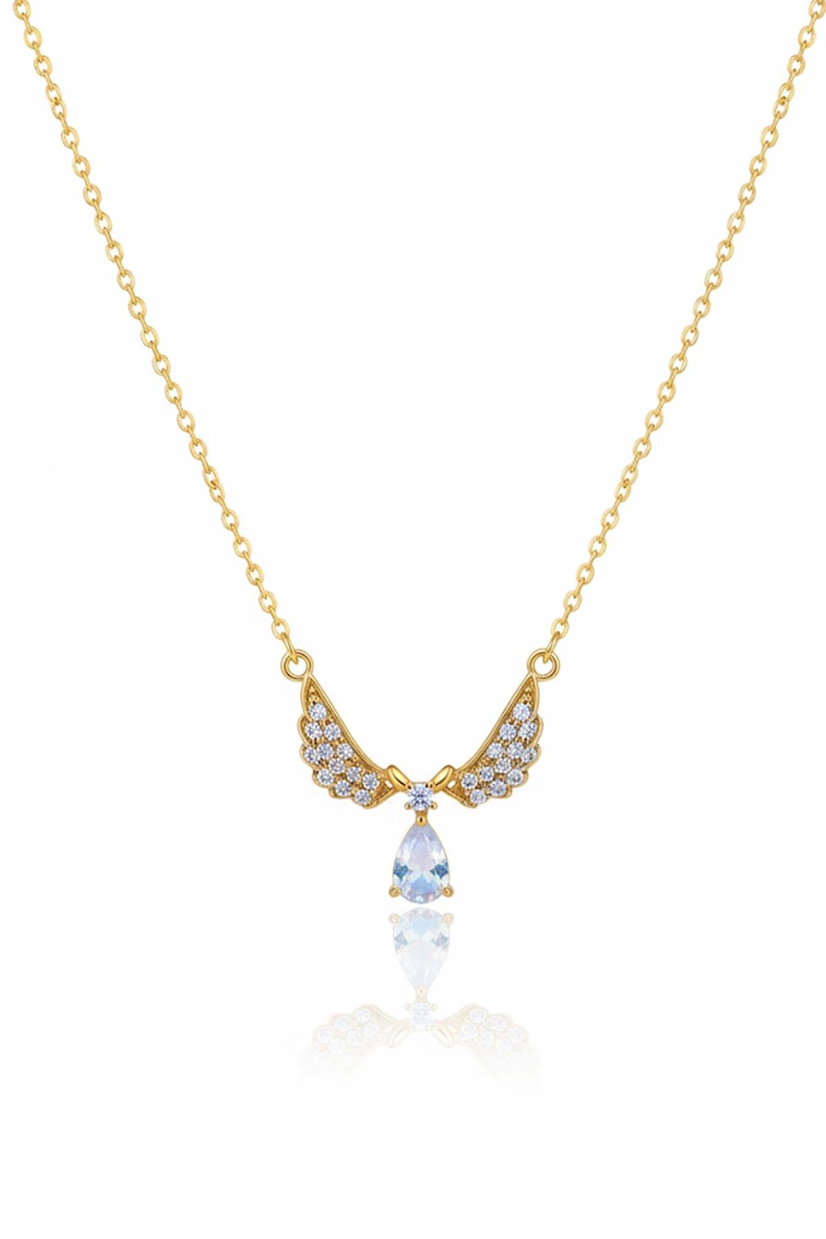 Turkuaz Taşlı Melek Kanatlı Çelik Kolye