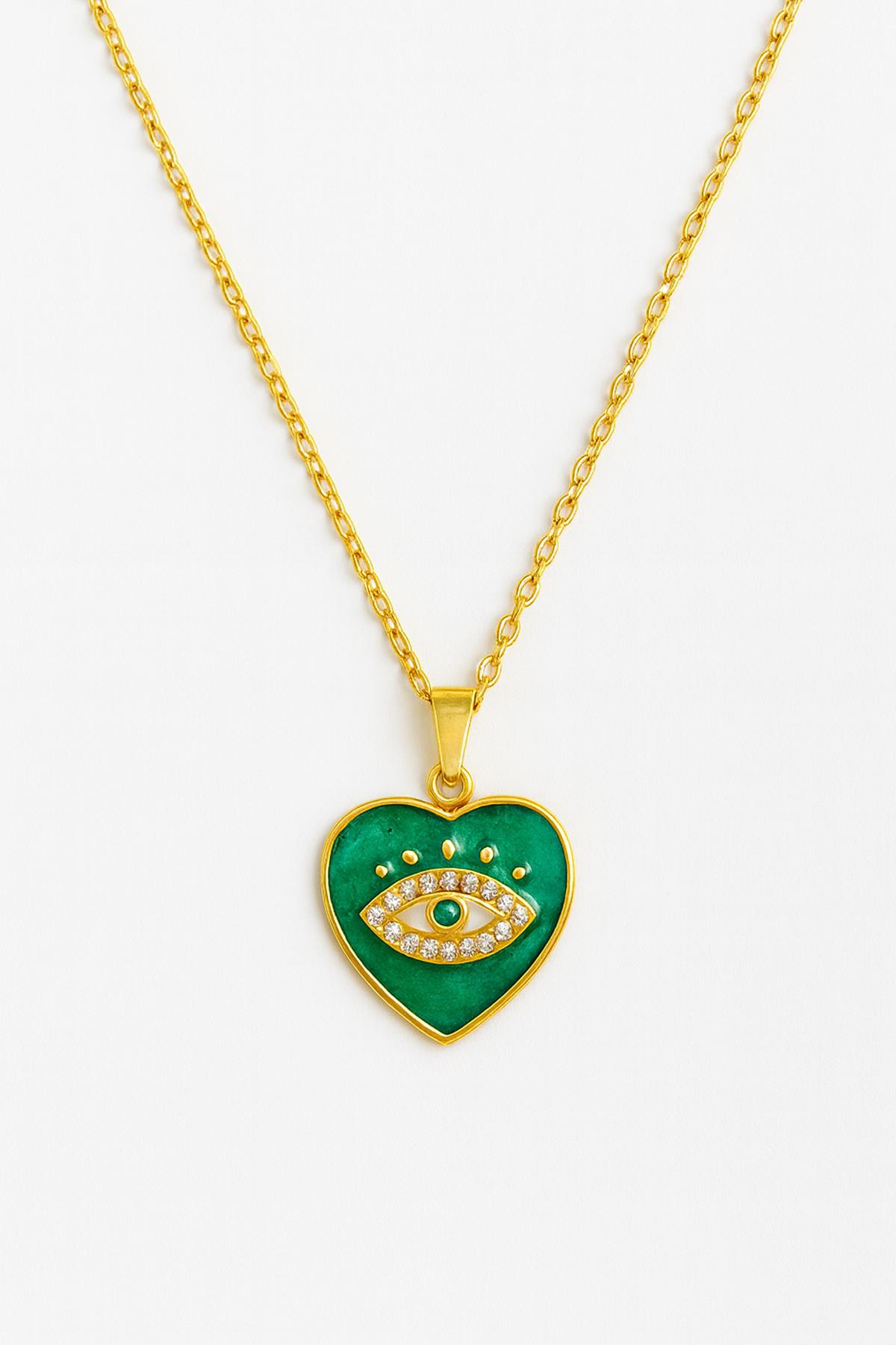 YEŞİL ZEMİNLİ KALP NAZAR GÖZ KOLYE